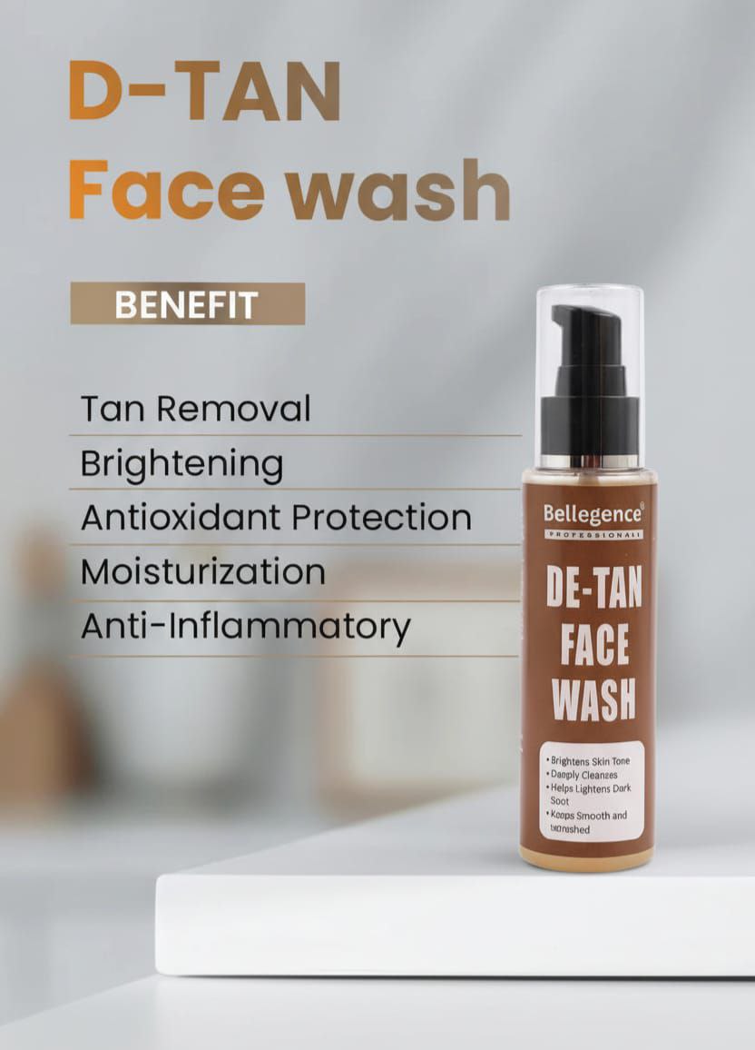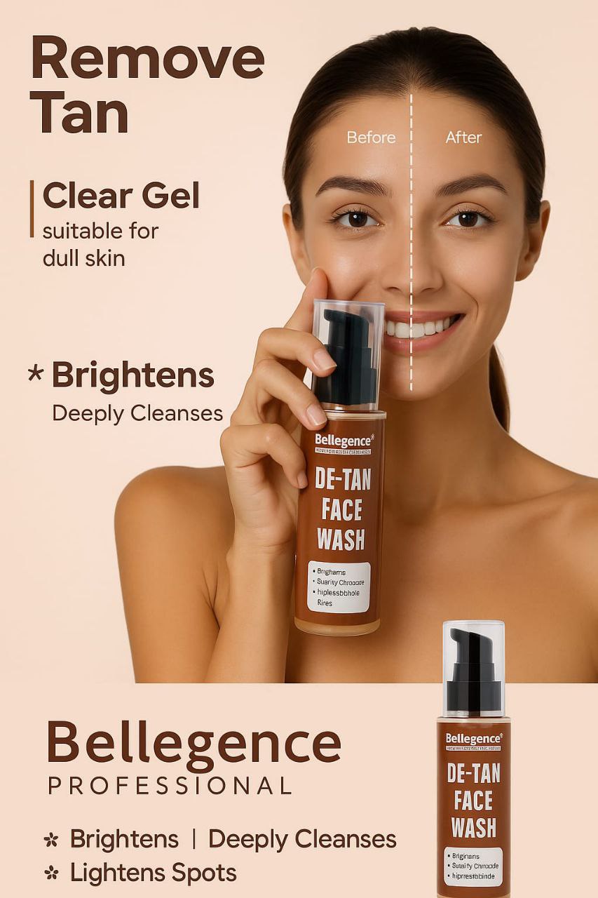 Introducing the Bellegence Professionnel De-Tan Face Wash, an innovative cleansing solution specifically formulated to address and reverse the effects of sun exposure and environmental darkening on the skin.