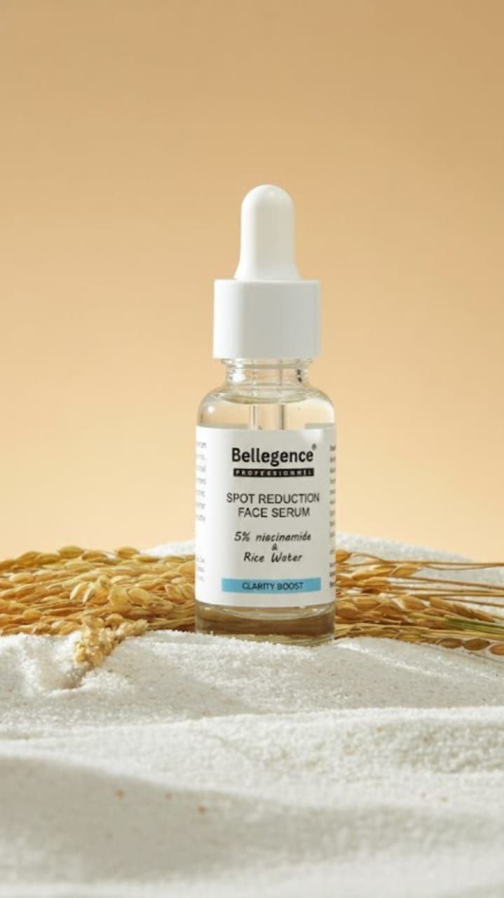 Introducing the BELLEGENCE PROFESSIONNEL Spot Reduction Face Serum, a concentrated treatment formulated with a "Clarity Boost" blend to target imperfections, uneven tone, and skin texture.